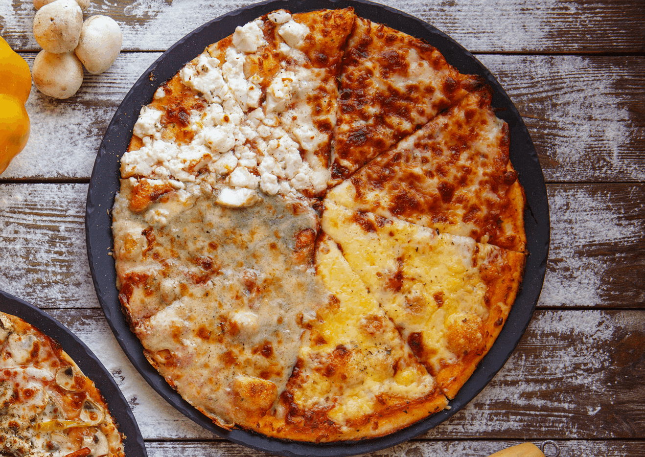 A masterpiece divided into four seasonal flavors: artichokes, olives, ham, and mushrooms. A must-try for those seeking local pizza specials with variety in every slice.